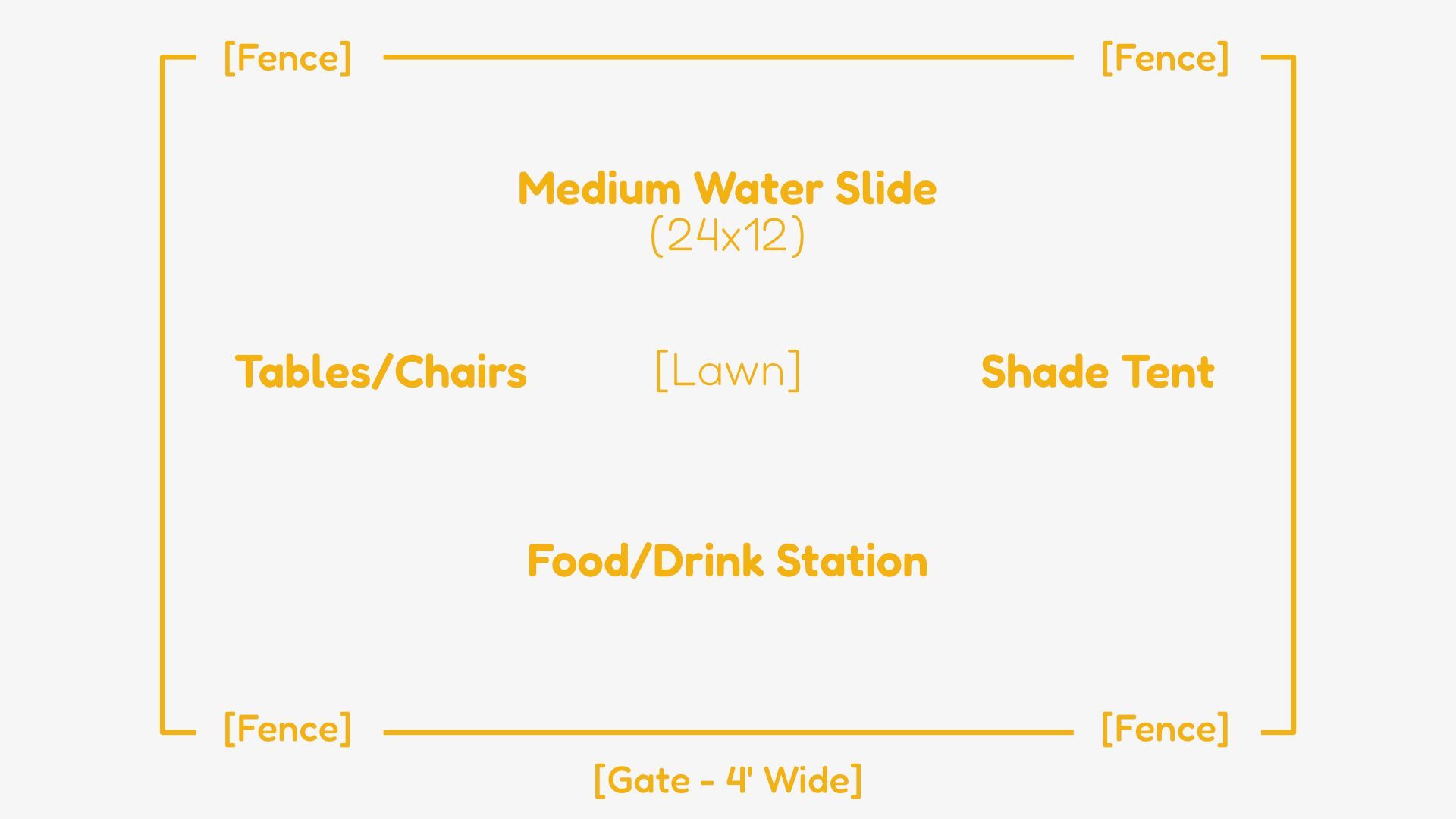| Bounce + Slide | 25' × 15' | 28' × 18' | Dry bounce area + attached slide |